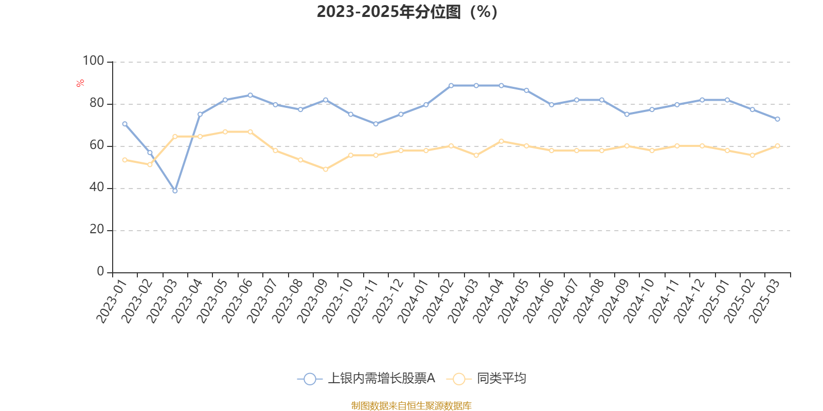 通过所选区间该基金净值增长率分位图,可以观察该基金与同类基金业绩比较情况。图为坐标原点到区间内某时点的净值增长率在同类基金中的分位数。