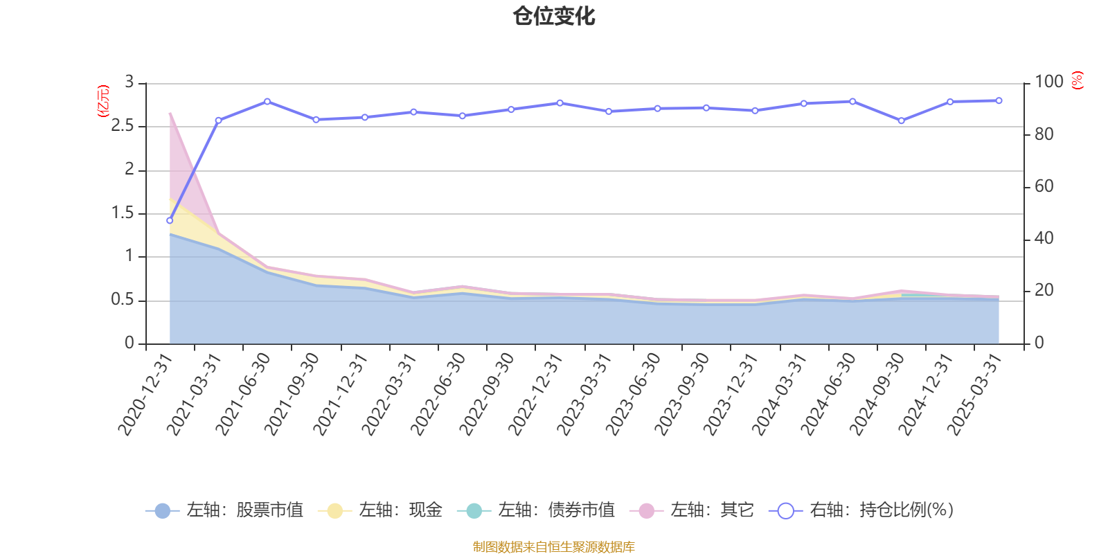 据定期报告数据统计,近三年平均股票仓位为90.5%,同类平均为87.29%。2025年一季度末基金达到93.31%的最高仓位,2020年末最低,为47.3%。