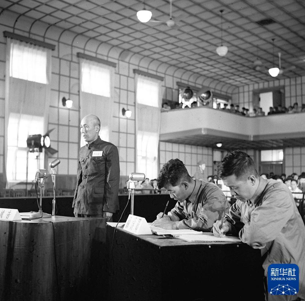 最高人民法院特别军事法庭于1956年6月9日至19日在沈阳对日本战犯铃木启久等8人进行了审判。图为审判时的情形。新华社发